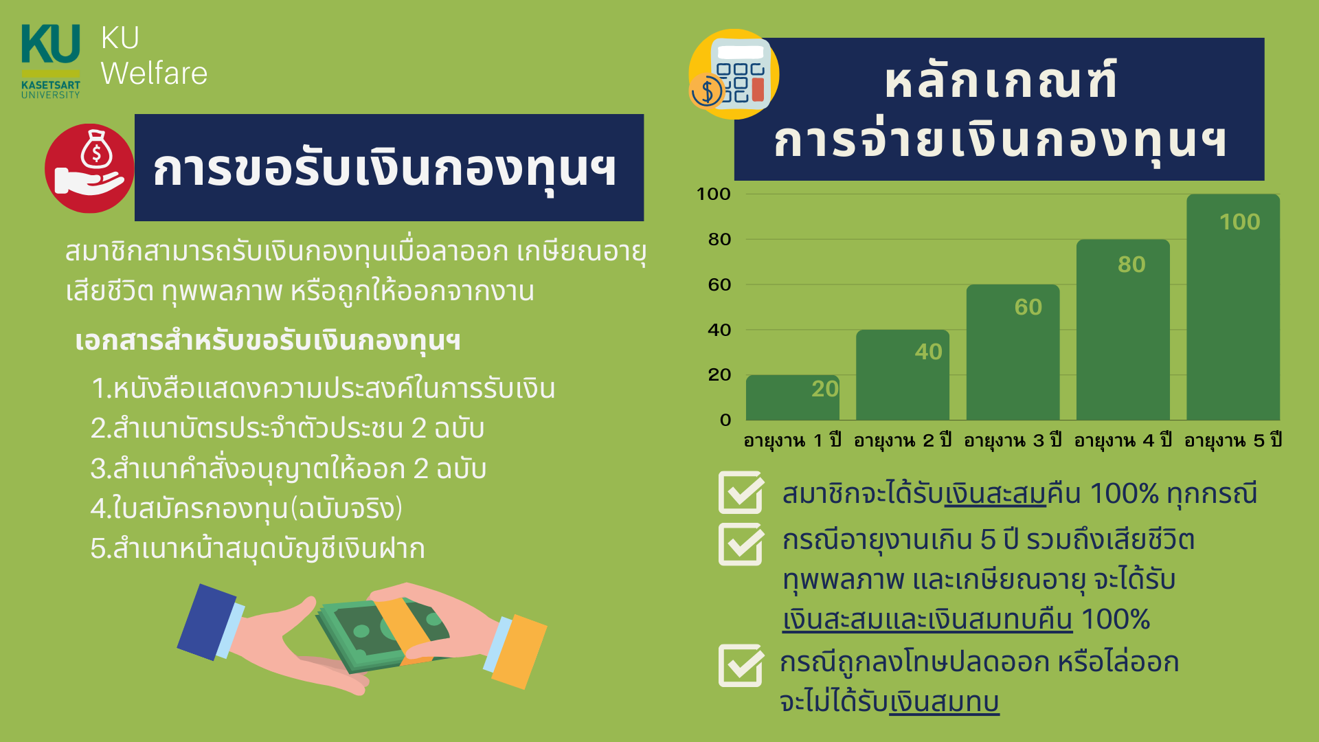 รายละเอียดเกี่ยวกับกองทุนสำรองเลี้ยงชีพ มก. | ทุุกประเภท | Download |