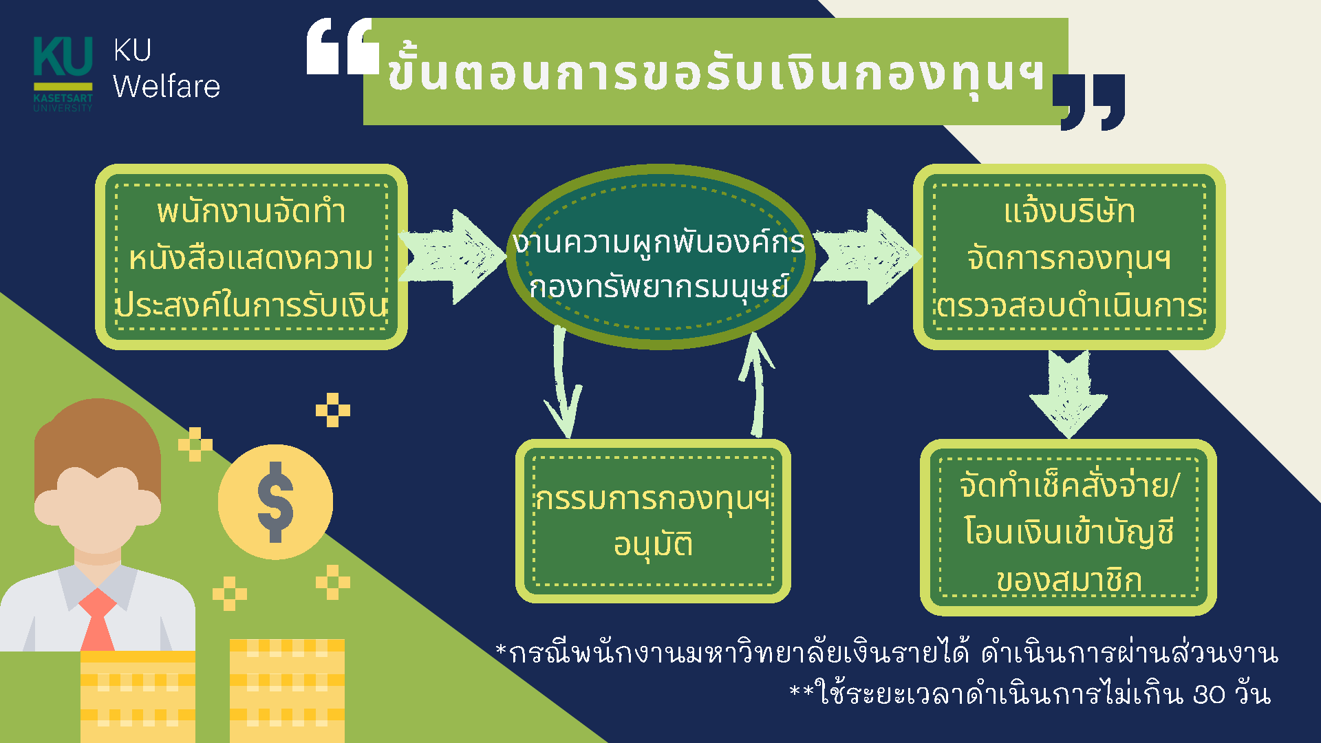 ขั้นตอนการสมัครสมาชิกกองทุนสำรองเลี้ยงชีพ มก. | ทุุกประเภท | Download |